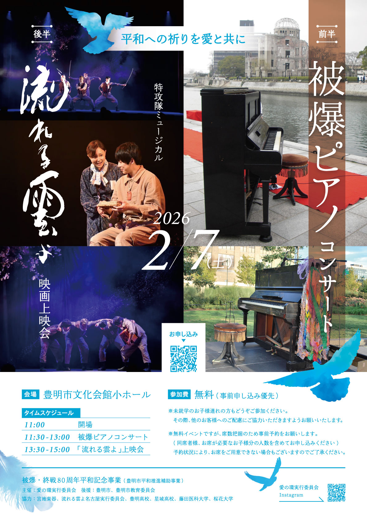 2026年2月7日(土)に愛の環実行委員会による「被爆ピアノコンサート・流れる雲よ映画上映会」が開催されました。